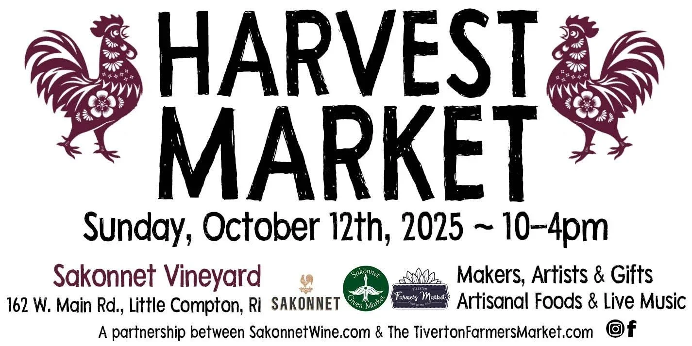Harvest Market Festival at Sakonnet Vineyards Sunday, October 12, 2025 10:00 AM 4:00 PM Sakonnet Vineyards Little Compton, RI (map) Google Calendar ICS